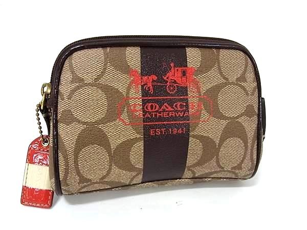 > ■美品■ COACH コーチ シグネチャー PVC×レザー マルチポーチ マルチケース 小物入れ レディース ブラウン系 DH7980