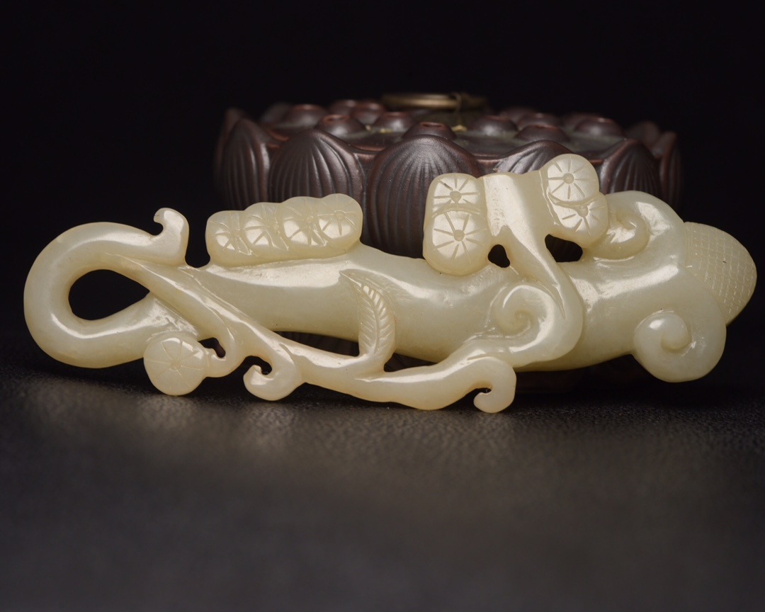 - 旧蔵 和田玉彫 如意 根付 中国古玩 骨董品 時代物 稀少唐物