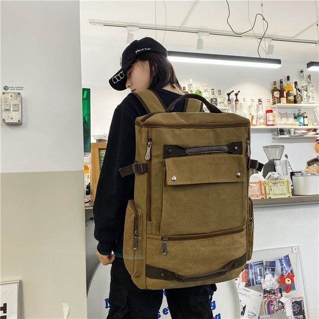 - リュックサック デイパック メンズバッグ バックパック レトロ風 大容量 ポケット多数 スマホポーチ フロントポケット付き カーキ
