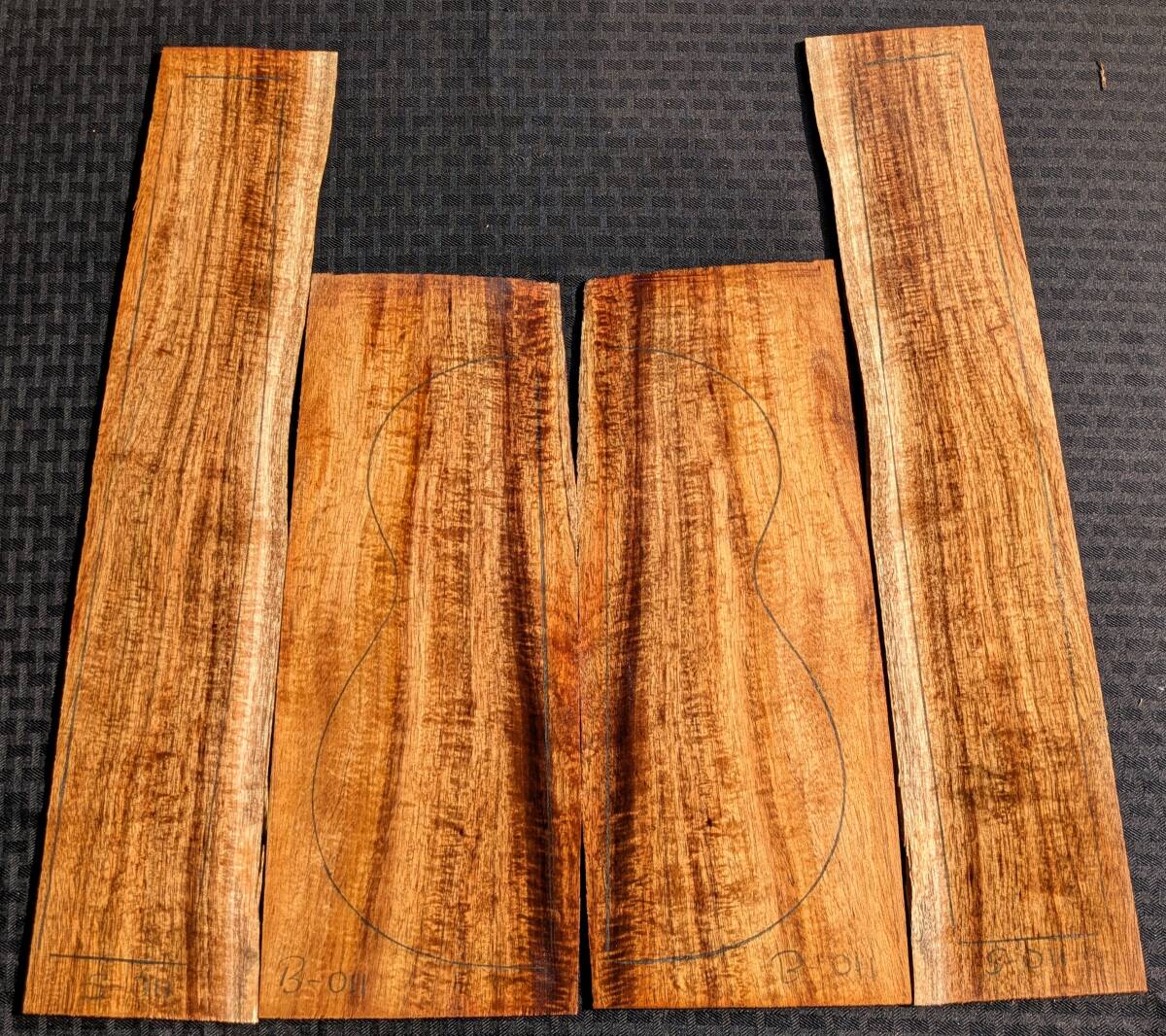 - 目玉商品◆ TR-BS-011◆超特価テナーウクレレ材・裏サイド4枚セット送無・希少3A ハワイアンコア材・ハワイ島直送Hawaiian Koa Tenor