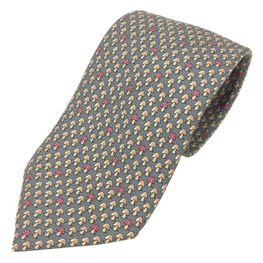 - 全国送料無料 HERMES エルメス ネクタイ きのこ柄 シルク グレー系 メンズ ビジネス小物 服飾小物 美品 中古 aq11709