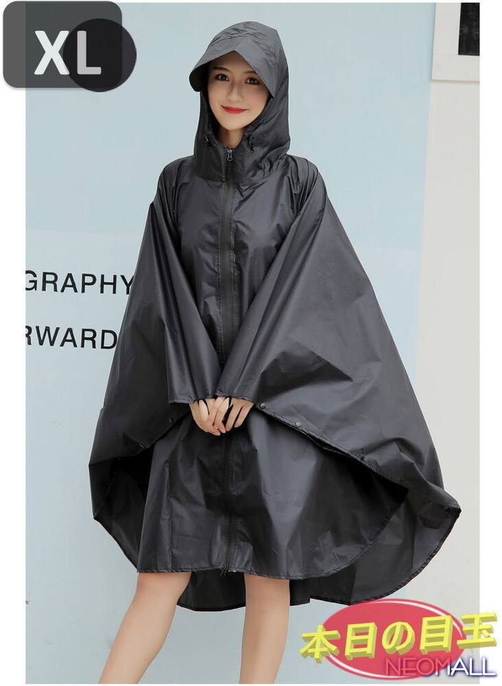 - 1スタ ☆ メンズ レディーズ レインポンチョ 【537】 ブラック XLサイズ レインウェア 通勤 通学 レジャー 自転車 カッパ 合羽 雨具
