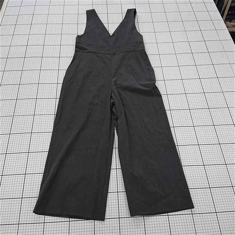 - ◇ Θ UNIQLO ユニクロ シンプル Vネック ワイド サロペット サイズL ダークグレー系 レディース E