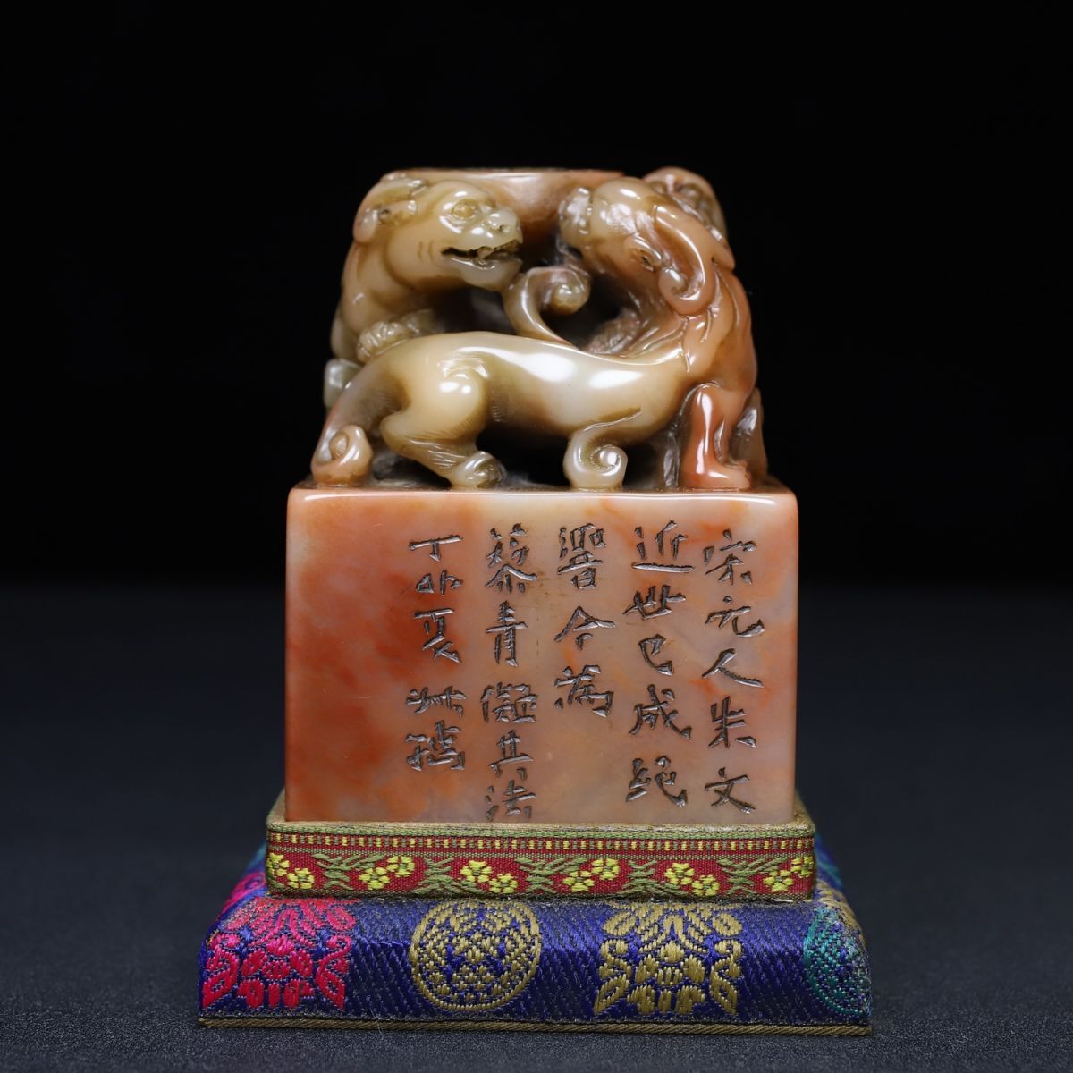 - 永し 清時代 壽山石 芙蓉石彫 瑞獸獻寶鈕 印章 印鑑 印璽 極細工 置物擺件 古美術品 時代物 古董品 収集 旧家蔵出 中国唐物 1515g