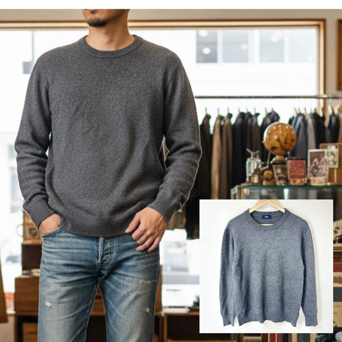 > カシミヤ混◎ベーシックニット◎【SHIPS】シップス クルーネック セーター トップス コットン 綿 シンプル グレー メンズM/Y38193YY