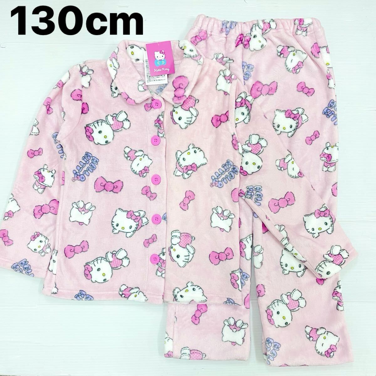 - 新品64652 ハローキティ 130cm ピンク 前開き長袖ミンクフリースパジャマ上下セット ルームウェア ガールズ ジュニア子供