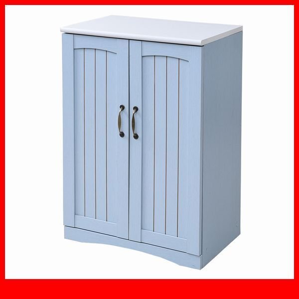 - キャビネット★フレンチカントリー/リビングキャビネット 木製キャビネット リビング収納 棚 ラック 姫系/扉付き/青 白/ffca-0002/特価zz