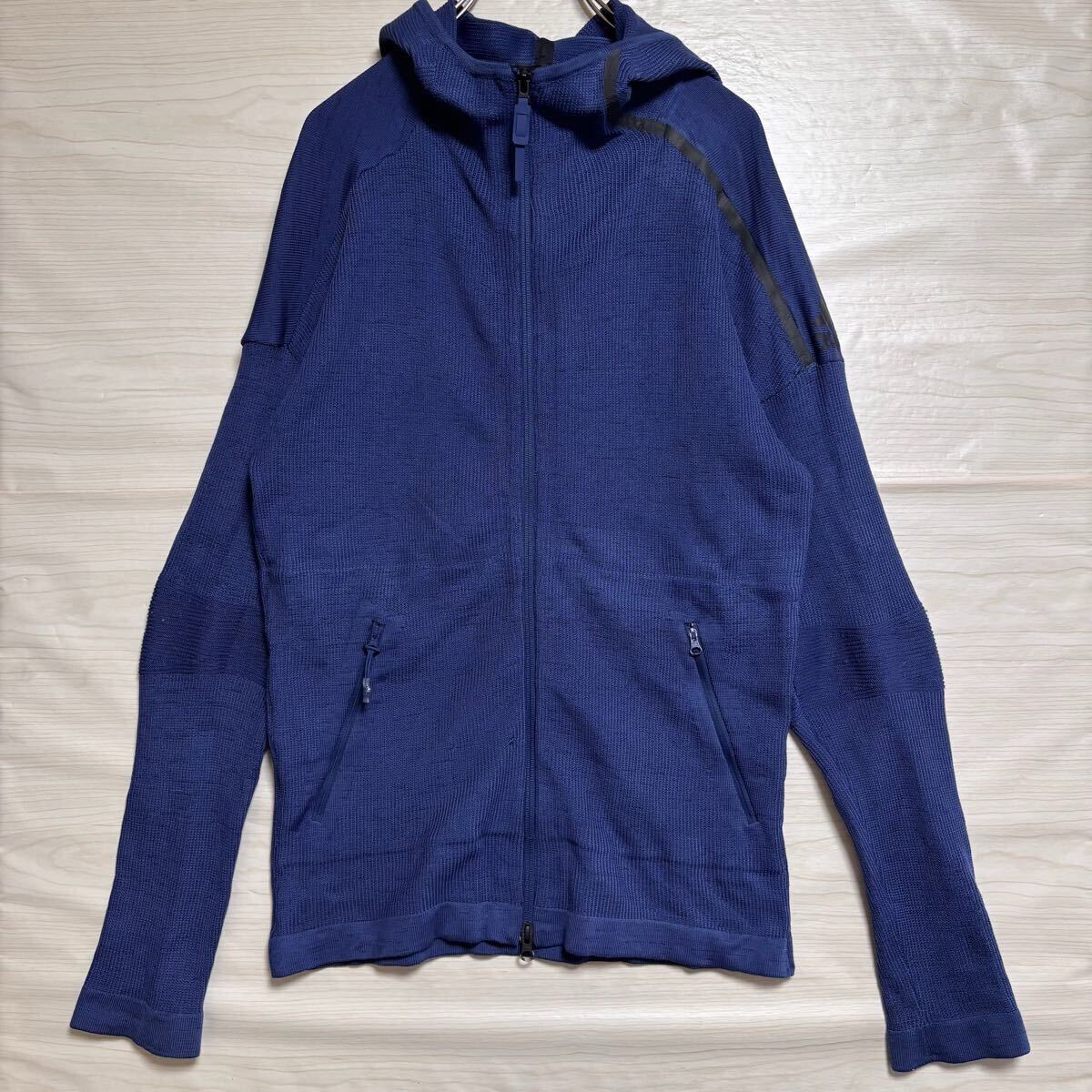 - adidas アディダス ジップパーカー ジップアップ スウェット フーディー サイズL相当 ネイビー 紺色 コットン メンズ トップス(45)