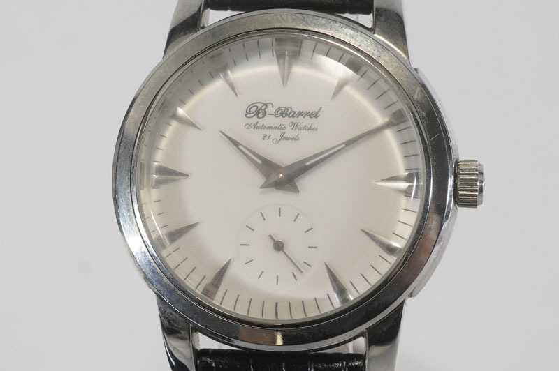 > 1円~【L938】実働 B-Barrel/ビーバレル BB-0030 自動巻き 21石 スモセコ ホワイト文字盤 純正ベルト メンズ 腕時計
