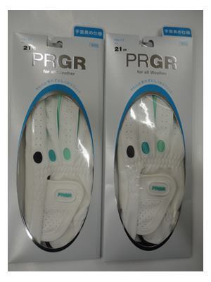 > ■手首長め仕様 !! PRGR 合皮 プロギア レディース ゴルフ グローブ x 2枚【21cm/ホワイト&グリーン】PGL-17