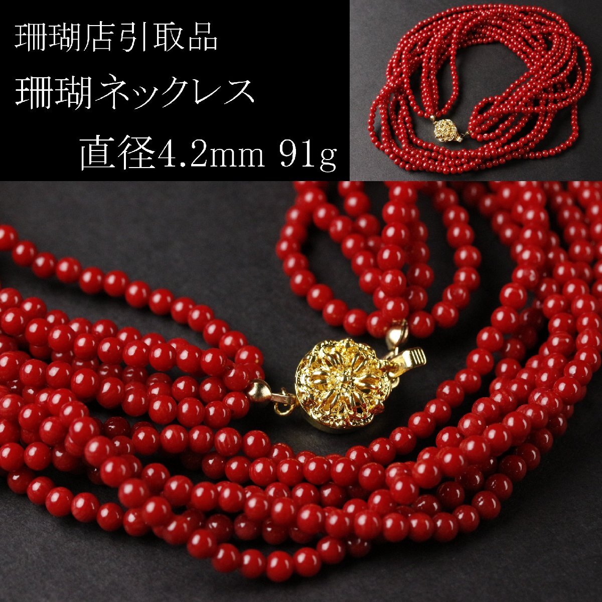 > 【LIG】珊瑚店引取品 珊瑚 ネックレス 直径4.2mm 91g アクセサリー ⑪ [-WRI]25.10