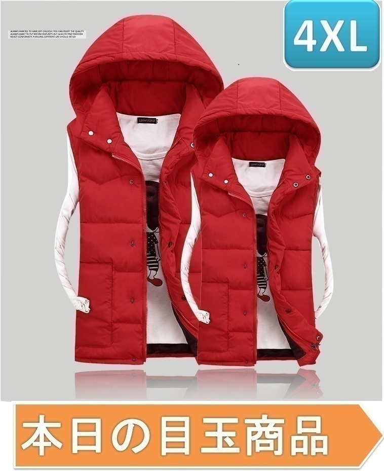 > 人気 【193】 シンプルな フード付き ダウンベスト レッド 赤 4XL メンズ ナイロン カモフラ 柄 アウトドア 防風 軽量 ジャケット