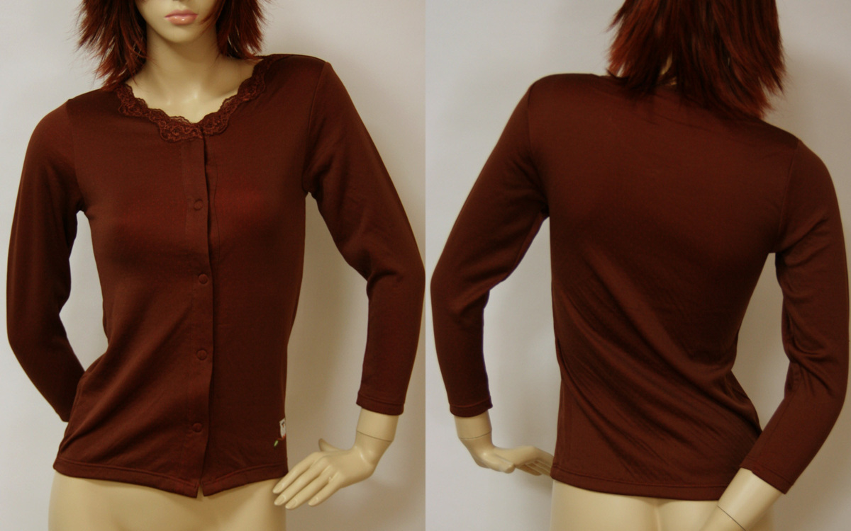 - 送料無料◆着脱テープ◆マジックテープ式◆長袖インナー(M/ブラウン)◆赤色縁起&健康肌着◆赤いパワー◆裏地:綿100%◆袋編み◆ふくろう刺繍