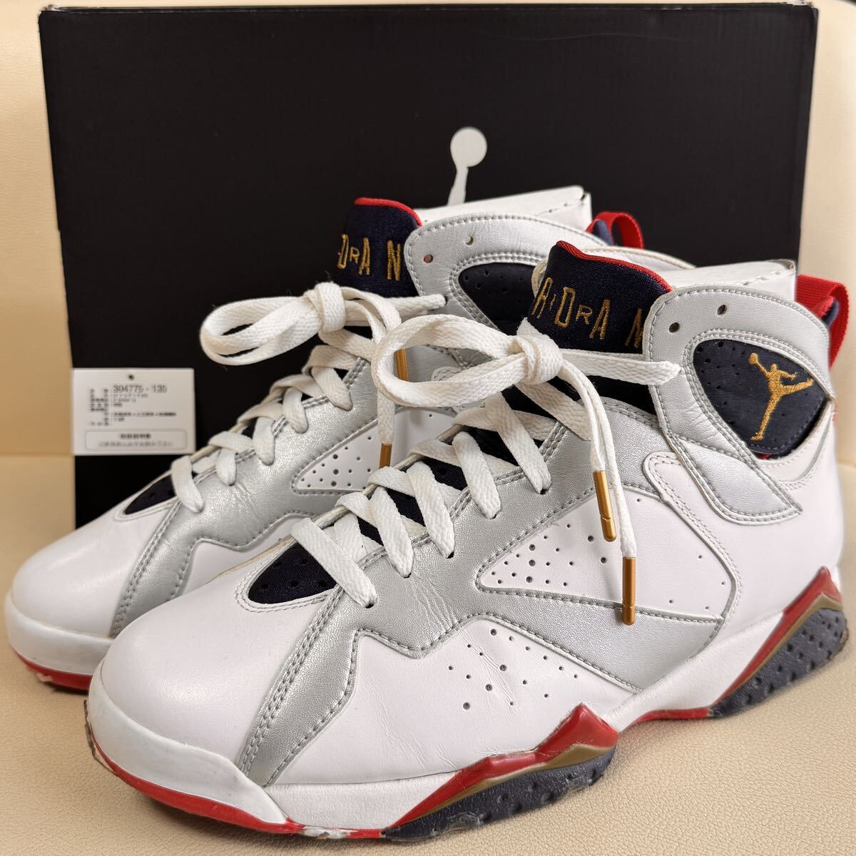 > NIKE AIR JORDAN 7 RETRO US8 26cm エアージョーダン 304775-135 オリンピック OLYMPIC WHITE/MTLLC GOLD-OBSON-TR RD