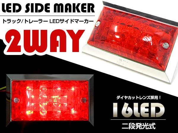 > 【送料380円】『1個 24V』『赤/レッド』16発 LED サイドマーカー 角型 クリアレンズ マーカー ランプ トラック トレーラー 車幅灯 路肩灯