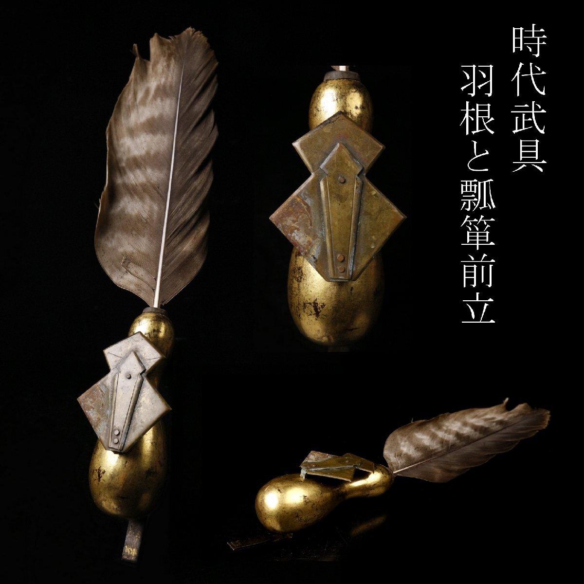 > 【LIG】時代武具 羽根と瓢箪前立 29.5㎝ 鎧兜 兜飾 甲冑 コレクター収蔵品 [.QE]25.11