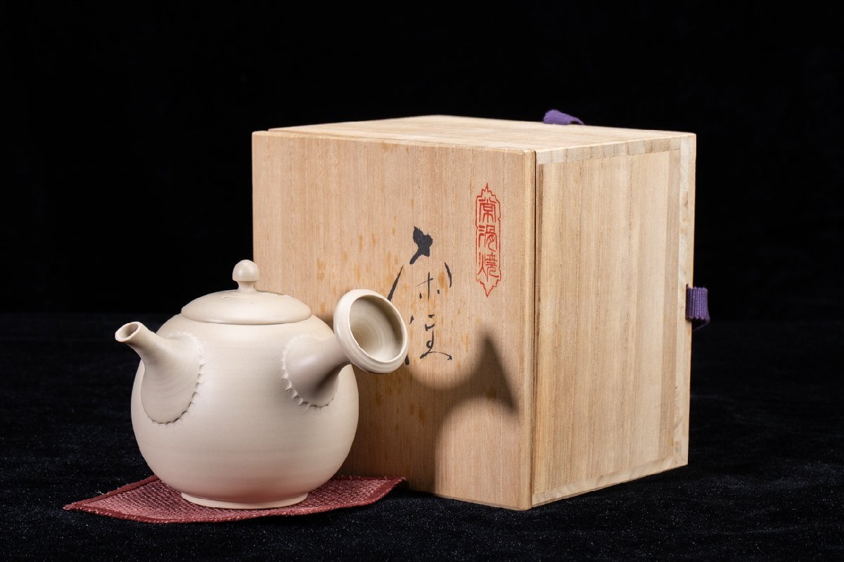 - 【珍品堂】1円から N7-V5 常滑焼 近藤義和 作 在銘 白泥 七福神 繊細絵付 急須 高10㎝ 共箱 木箱 煎茶道具 茶器 古美術 時代物 骨董品