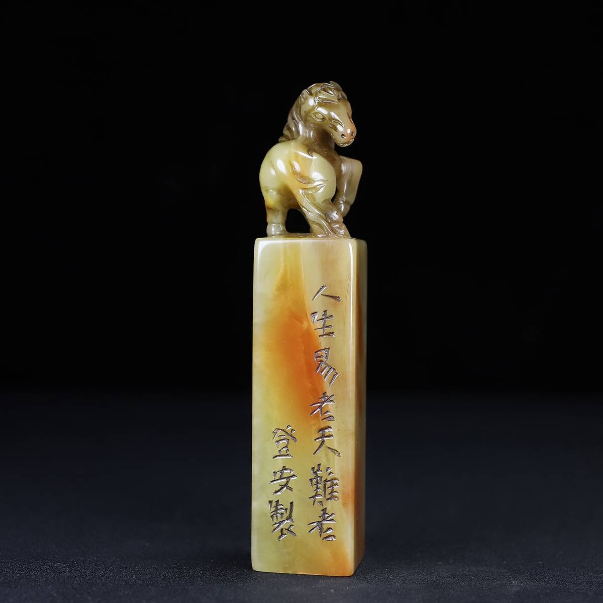 - 旧蔵 寿山石彫 馬回首 印章 文房具 古擺件 古置物 中国古玩 骨董品 時代物 稀少唐物