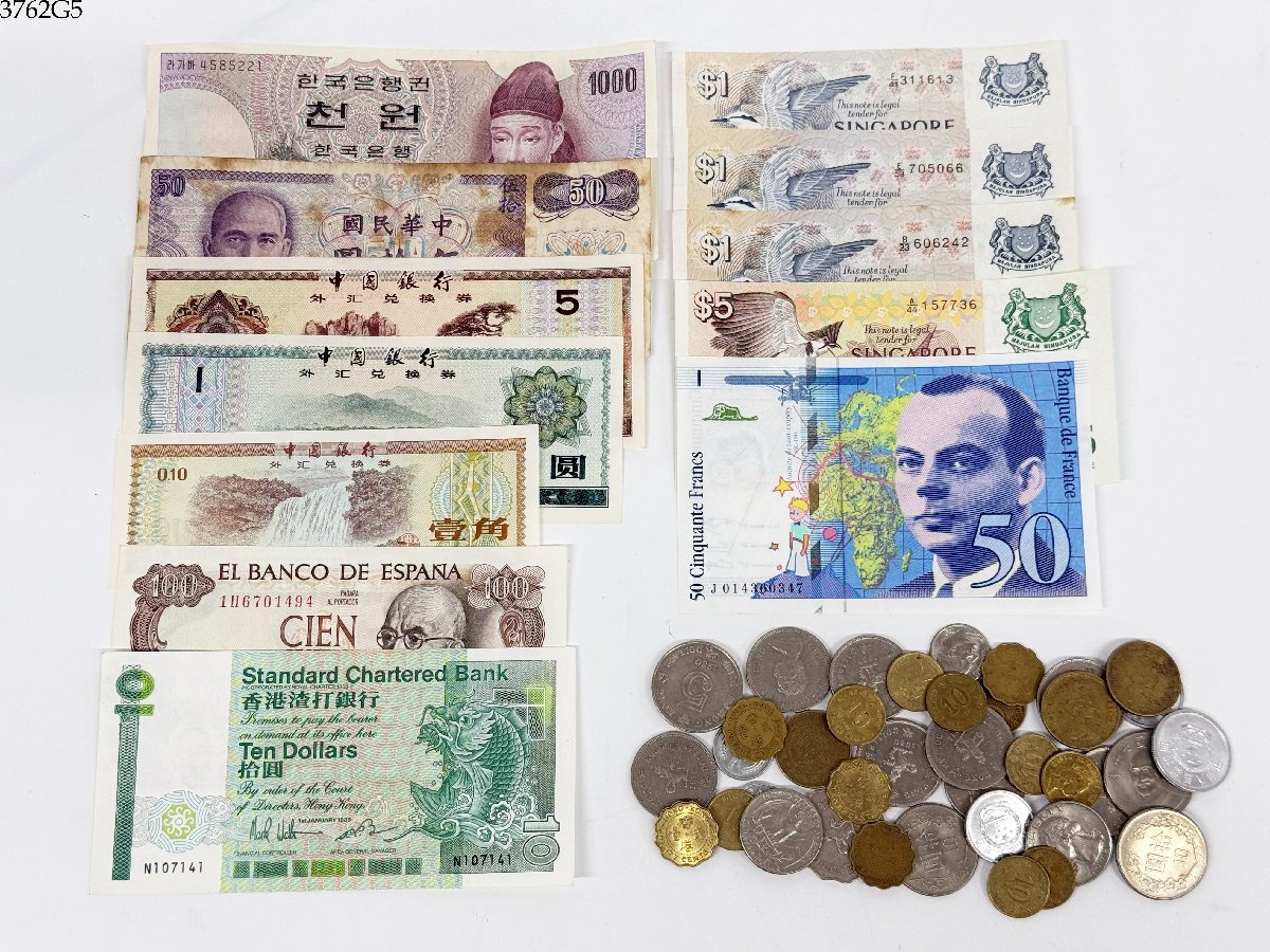 - 送料無料 外国紙幣 硬貨 1000ウォン 50フラン 5ドル 伍拾圓 伍圓 壹圓 壹角 中国 香港 韓国 シンガポール etc.. 古銭 まとめ 3762G5-21