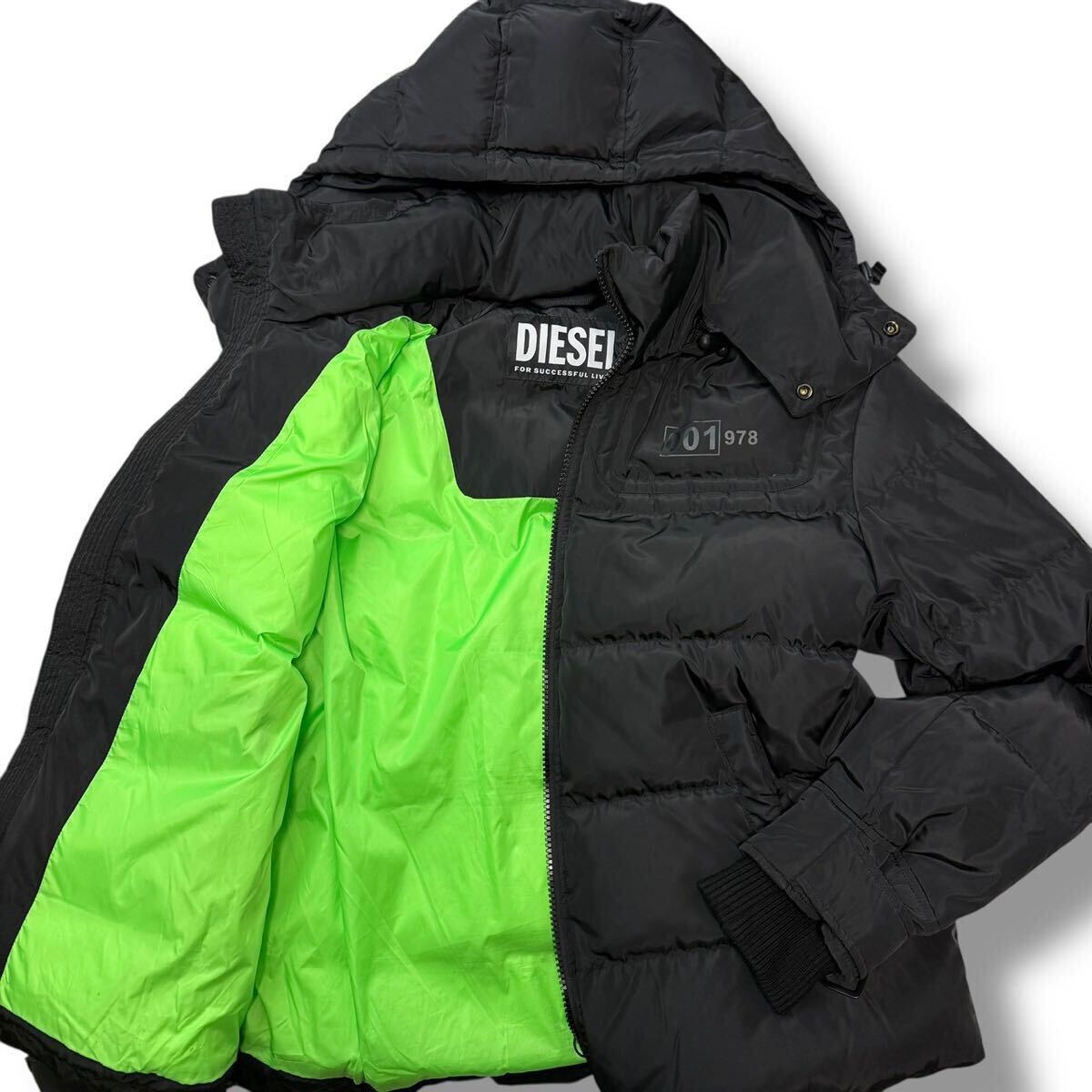 - 1540 現行◎極美品 XL相当!!DIESEL ディーゼル 2way ダウンジャケット ブラック 黒 W-RUSSELL-PAD フード着脱可 バックロゴ 裏地蛍光