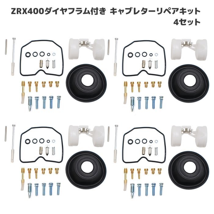> カワサキ ZRX400 ZRX-Ⅱ キャブレター リペアキット 4個セット オーバーホール 新品 パッキン バルブ ダイヤフラム 修理 補修 メンテナンス