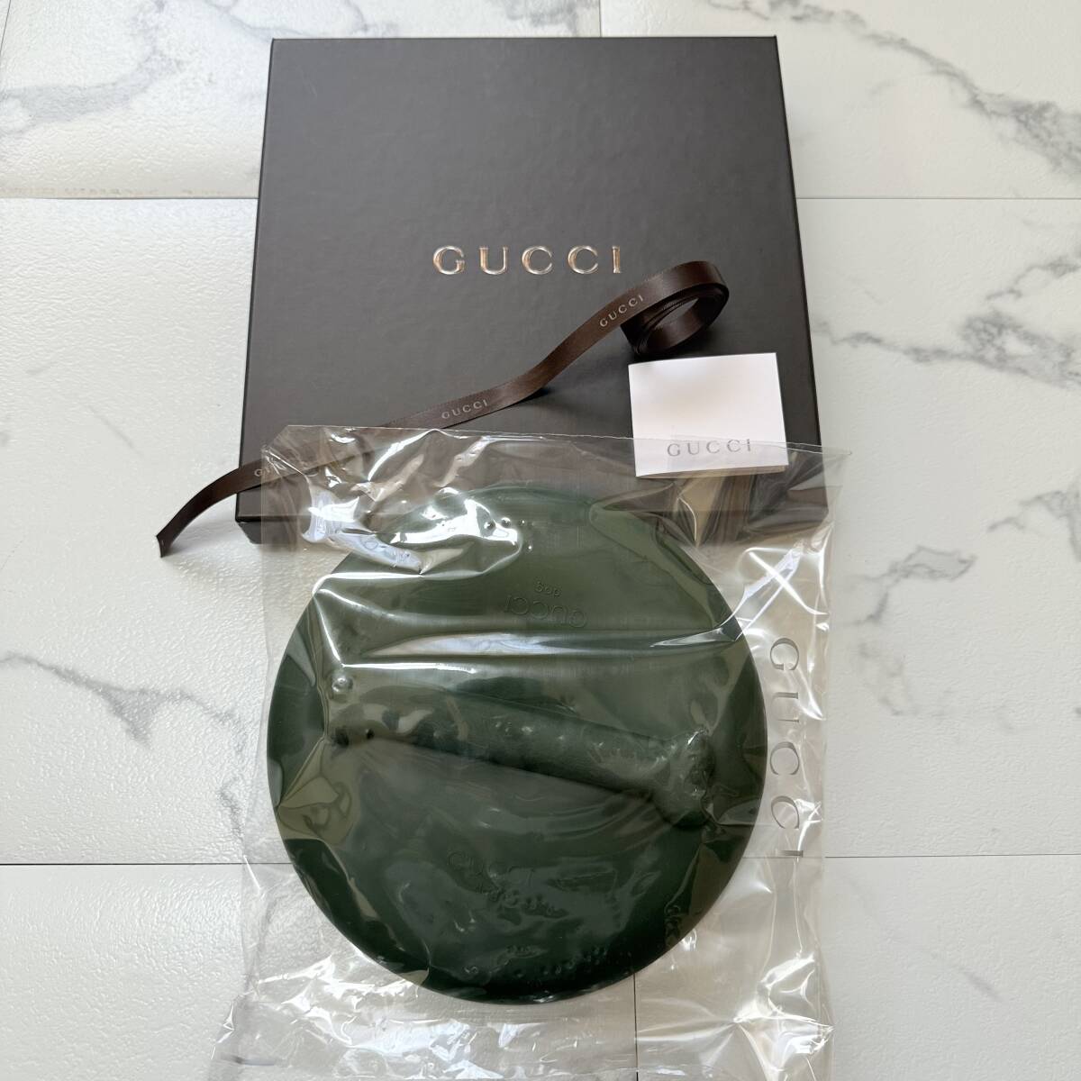 > ★ GUCCI DOG グッチ ドッグ フリスビー 犬 ペット用品 ラバー ボーン ロゴ グリーン 緑 イタリア製 未使用 ★