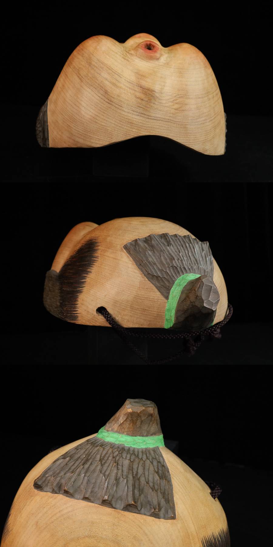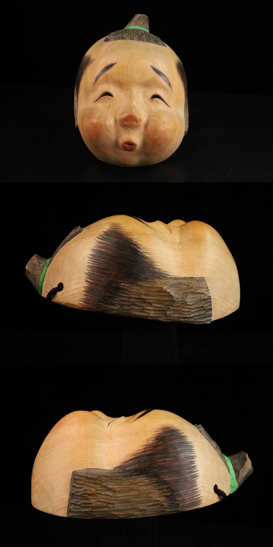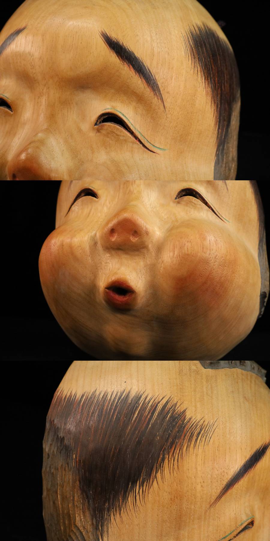 - ◇雅◇ 真作保証 彫刻家 前島秀章 作 創作面 「小僧」 在銘 直筆サイン入 高21cm/280g 木彫面 飾面 共箱 /FT.25.10 [B139] UQN