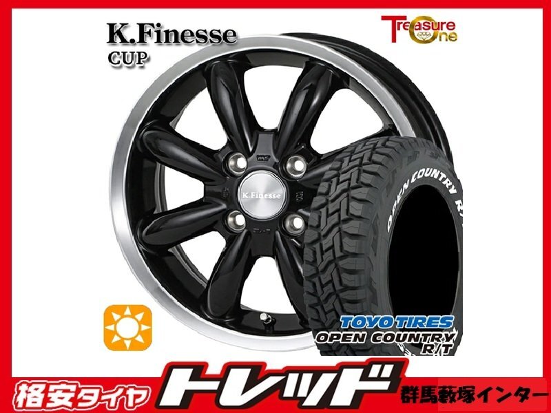 - 藪塚店 新品 夏タイヤアルミホイールセット KフィネスCUP 15インチ 4.5J PCD100 4H +45 BK/RP オープンカントリーR/T 165/60R15 77Q