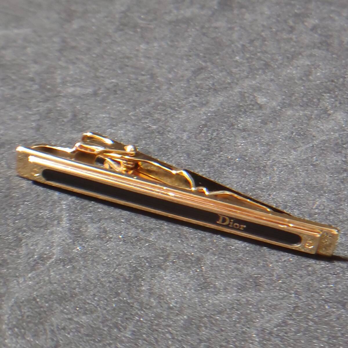 - Dior ディオール ロゴ ネクタイピン ブラック ゴールド Christian Dior タイピン タイバー シンプル フォーマル 披露宴 特別 管B14B22