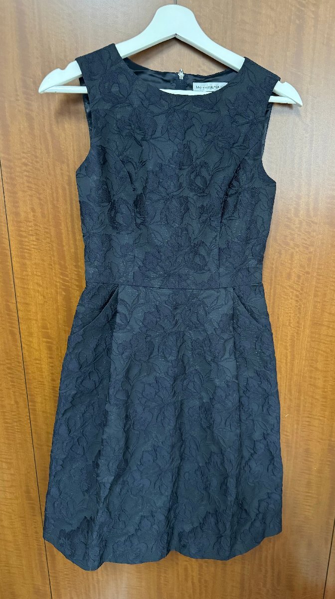 - M-PremierBLACK エムプルミエブラック ひざ丈 ノースリーブ 刺ワンピース トレス 34号 黒近い紺 日本製 古着 504
