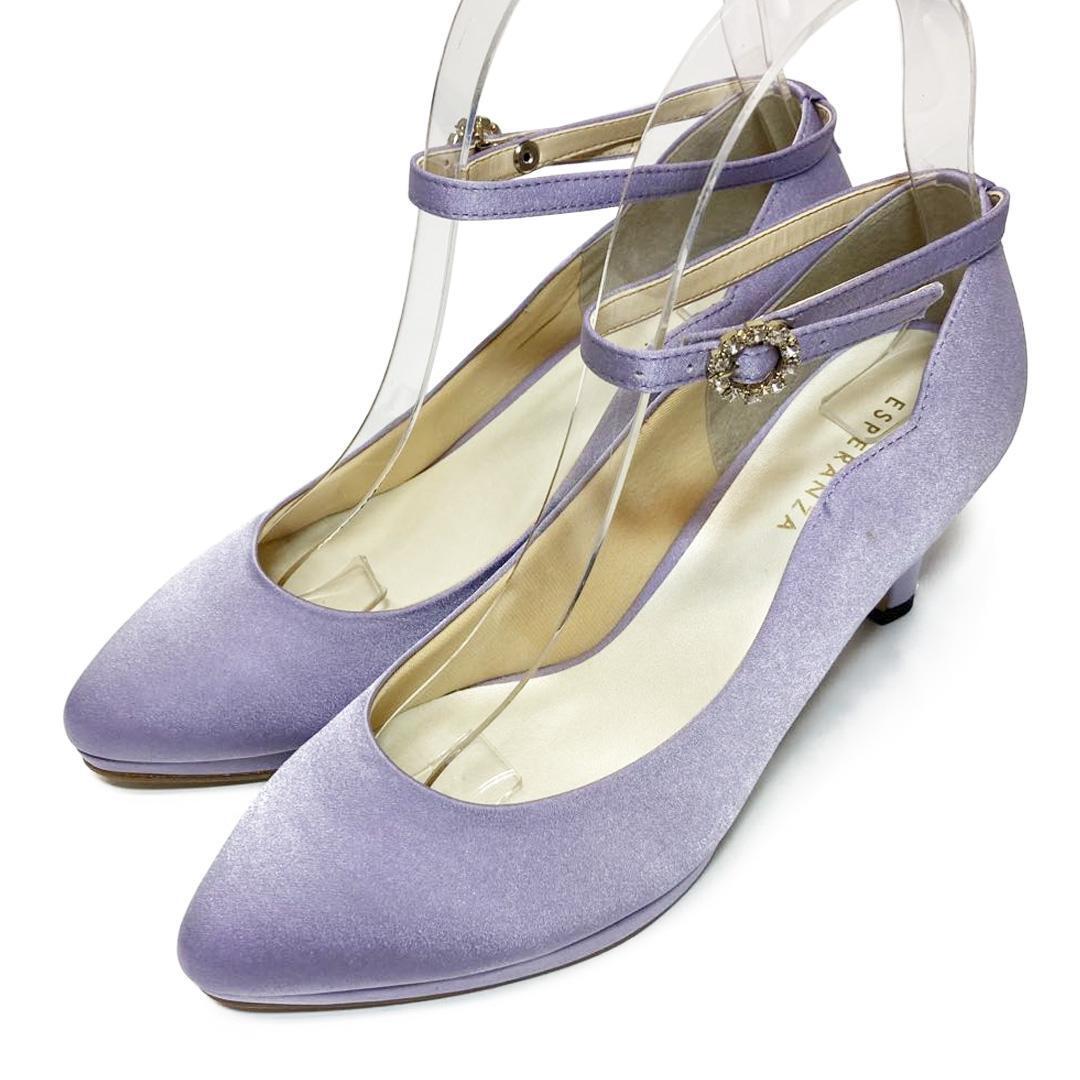 - ESPERANZA エスペランサ アンクルストラップ パンプス ビジュー サテン 23cm