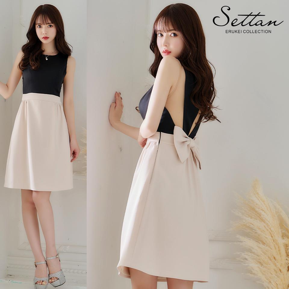 - ERUKEI SETTAN エルケイセッタン バイカラー Aラインミディアムドレス sugar シュガー