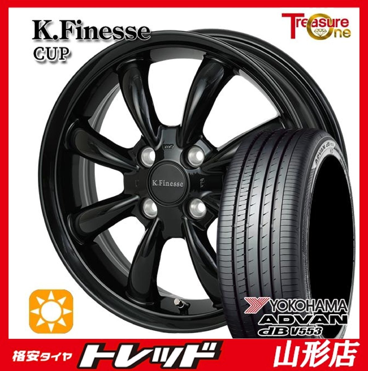 - 山形店 新品 夏タイヤホイール4本セット K.finesse CUP 15インチ 4.5j 4H100 +45 BK ヨコハマ ADVAN デシベルV553 165/55R15 2025年製