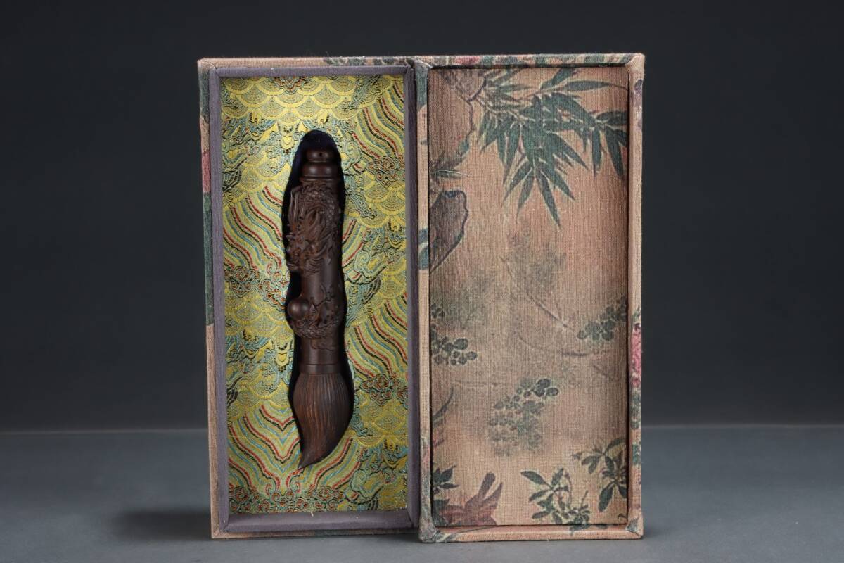 - 旧蔵 沈香木彫 毛筆 擺件 古擺件 古置物 中国古玩 骨董品 時代物 稀少唐物