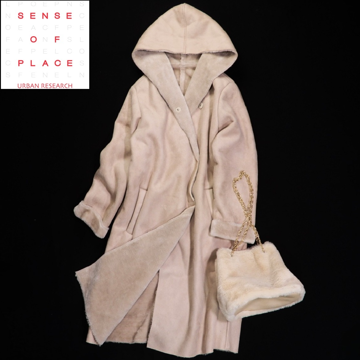 > センスオブプレイス アーバンリサーチ URBAN RESEARCH 大人可愛い☆ 洗える 内ファーボア フード付き フェイクムートンコート F