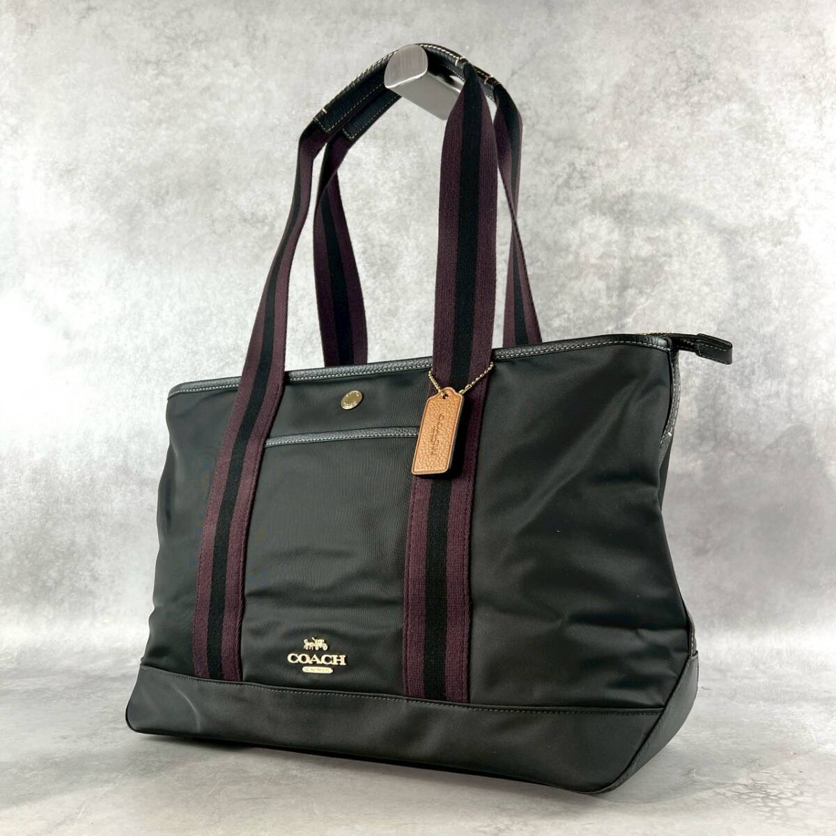 - 現行/極上美品 COACH コーチ トートバッグ ビジネス A4◎ 肩掛け ショルダー ウィークエンド ロゴ金具 黒 ブラック メンズ