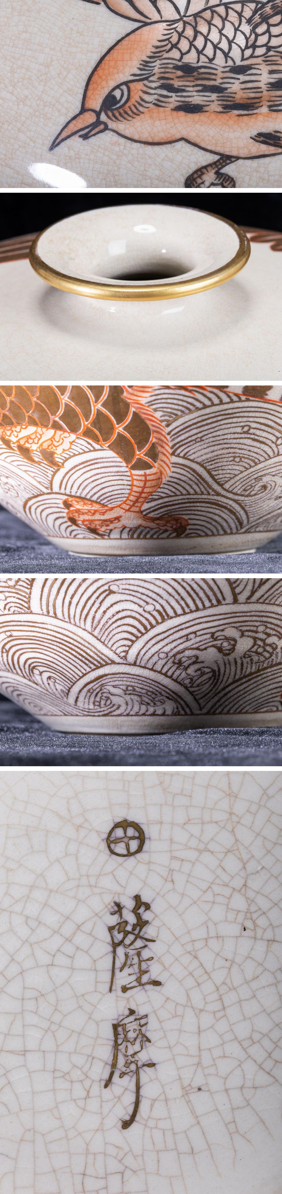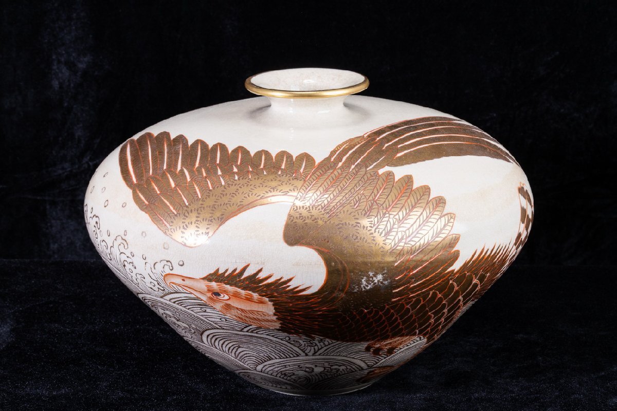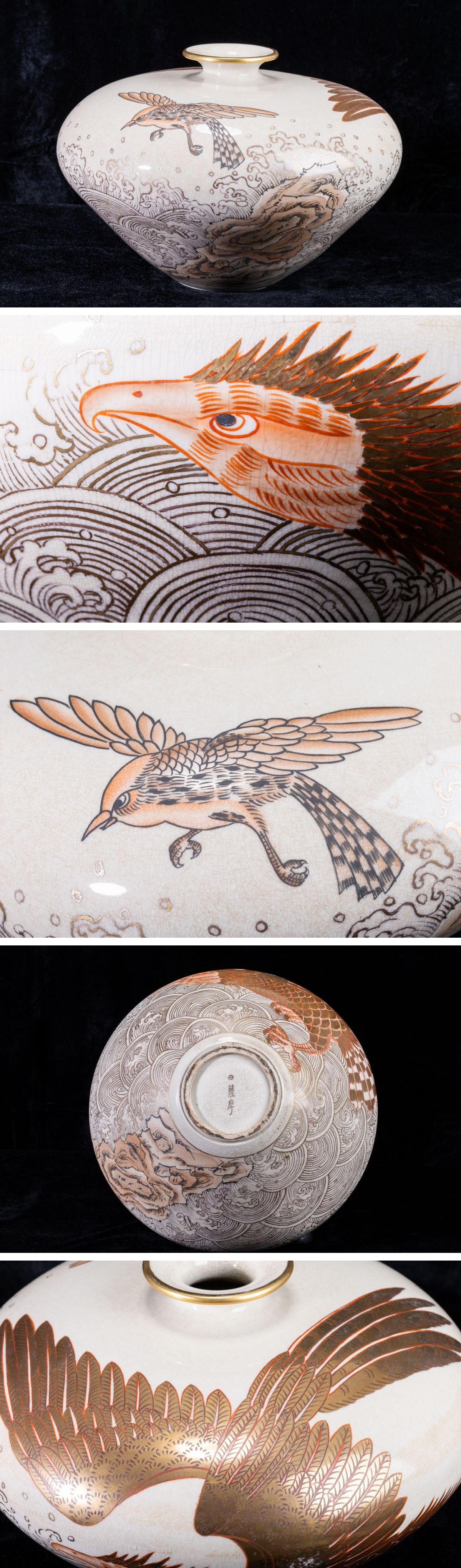 - 【珍品堂】1円から N71-V11 薩摩焼 金彩 染錦 鷹 鳥図 繊細絵付 花瓶 高27㎝ 飾壷 古薩摩 鑑賞品 時代物 工芸品 骨董品 古美術 美品
