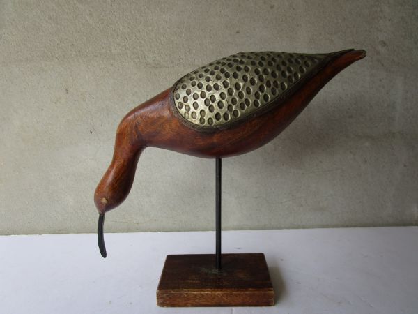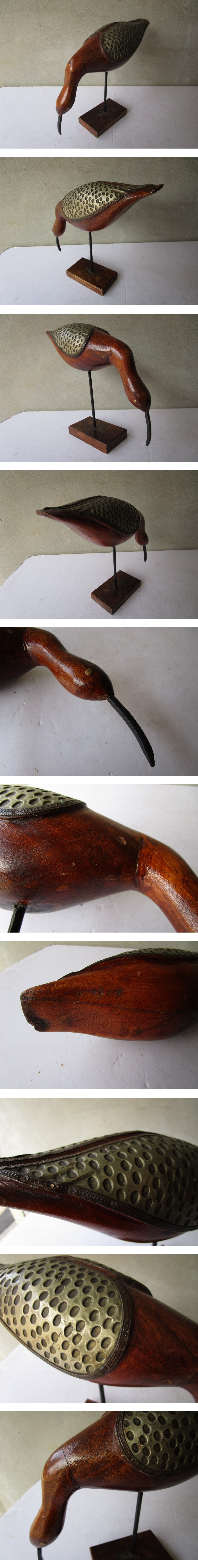 - 1960~70年代 イタリア 木+金属製の餌をついばむ鳥のオブジェ XL 26.5cmH ハンドカーヴィング/アーツ アンド クラフツ/イームズ/ウェグナー