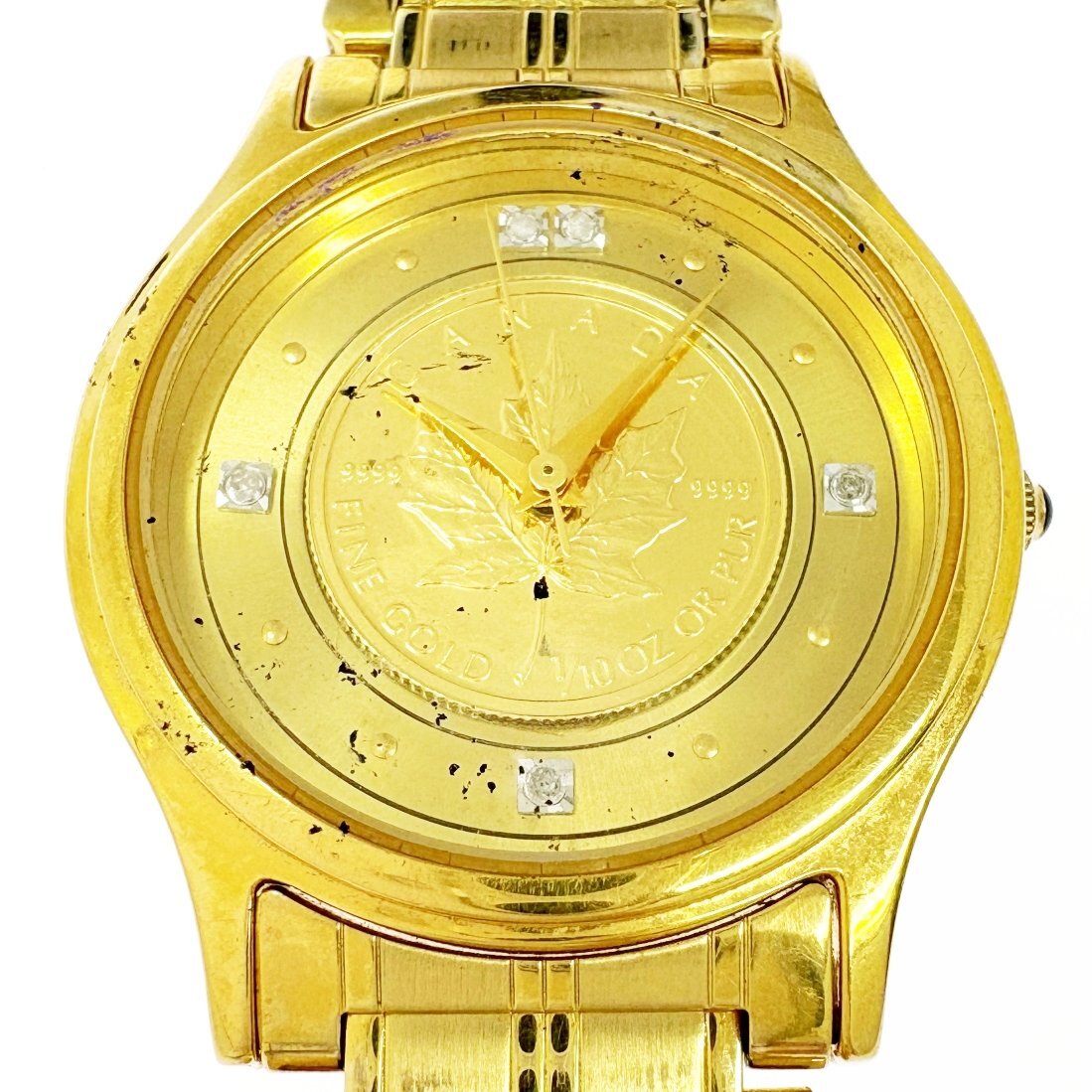 - 【1円スタート】【訳あり品】CANADA カナダ メイプルリーフコイン FINE GOLD 1/10oz ゴールド文字盤 クオーツ ボーイズ腕時計 524608