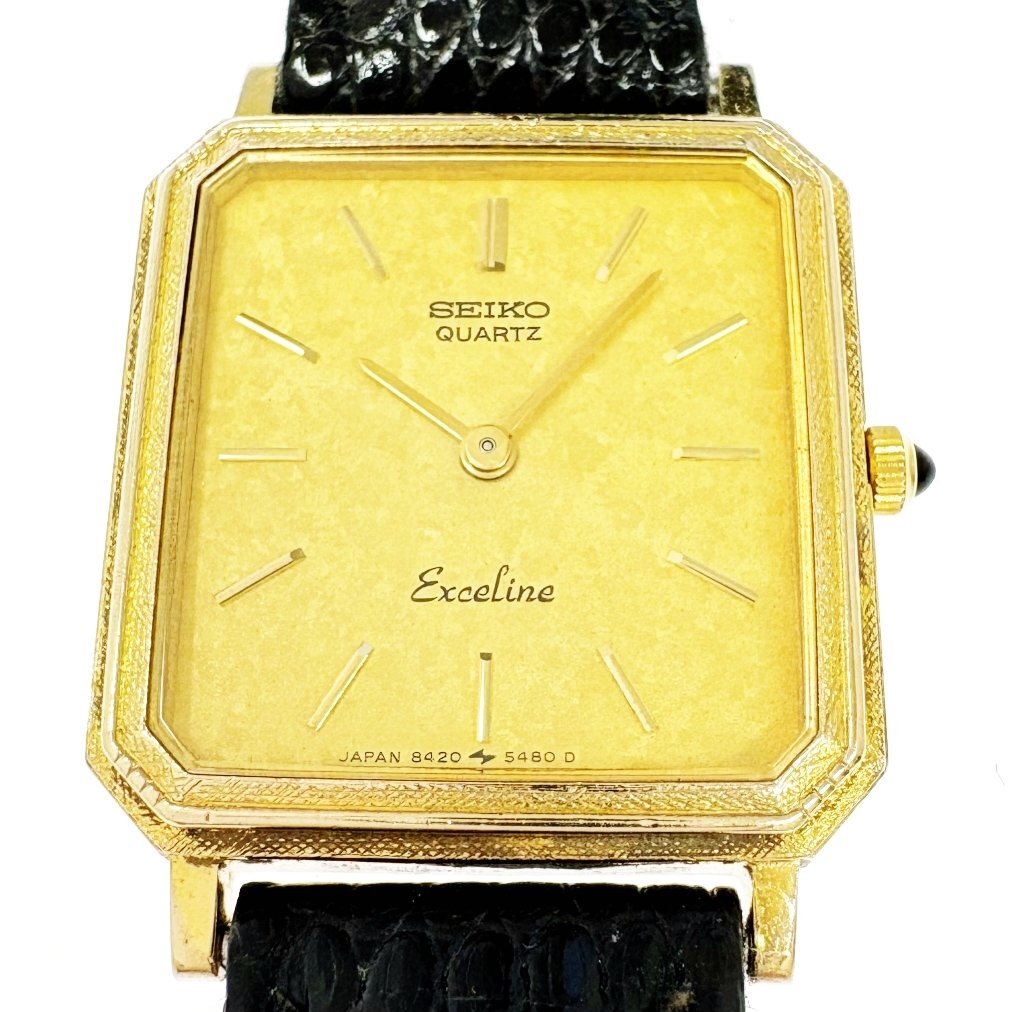 - 【1円スタート】SEIKO セイコー 8420-5410 エクセリーヌ 10K×SS ゴールド文字盤 クオーツ レディース腕時計 524524