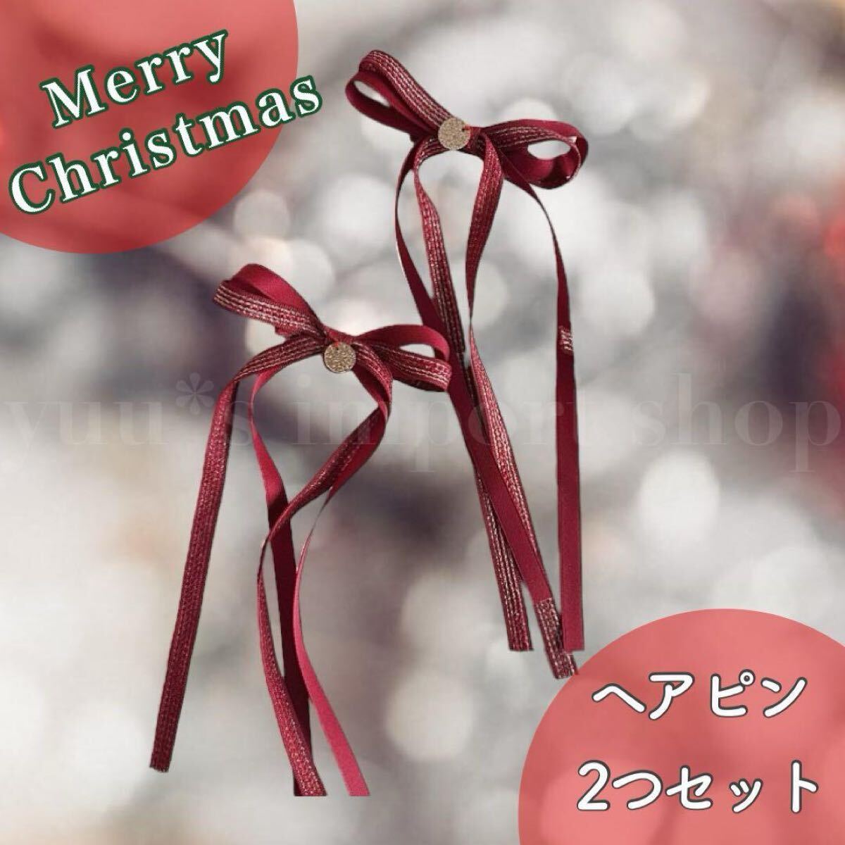 - ヘアピン ヘアアクセサリー 子供 レディース 赤 リボン クリスマス 可愛い アイドル クリップ