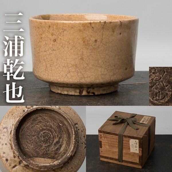 - 【千h1238】三浦乾也 筒茶碗 在銘 天禄堂 乾也 合箱 六代 乾山 茶碗 楽茶碗