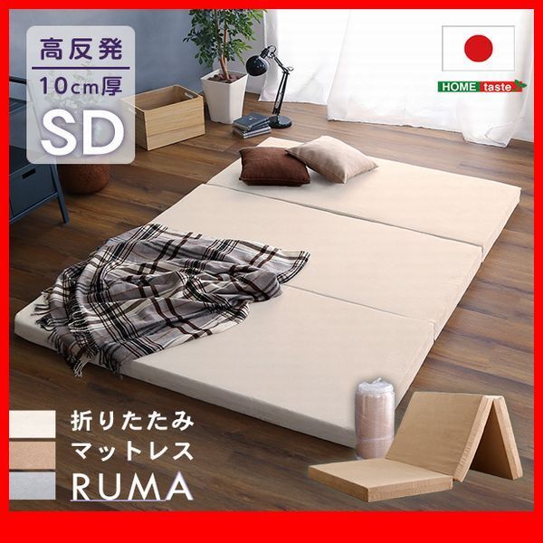 - マットレス★新品/三つ折り折りたたみマットレス セミダブル/厚さ10cm 高反発 安心の日本製/ベージュ グレー アイボリー/zz