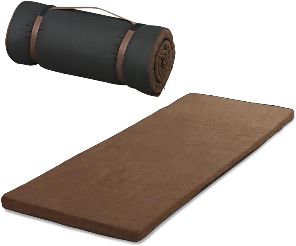 - アイリスプラザ 車中泊 防災グッズ マットレス コンパクト 丸めて 寝袋 高反発 × 低反発 厚4cm 長180cm ブラウン