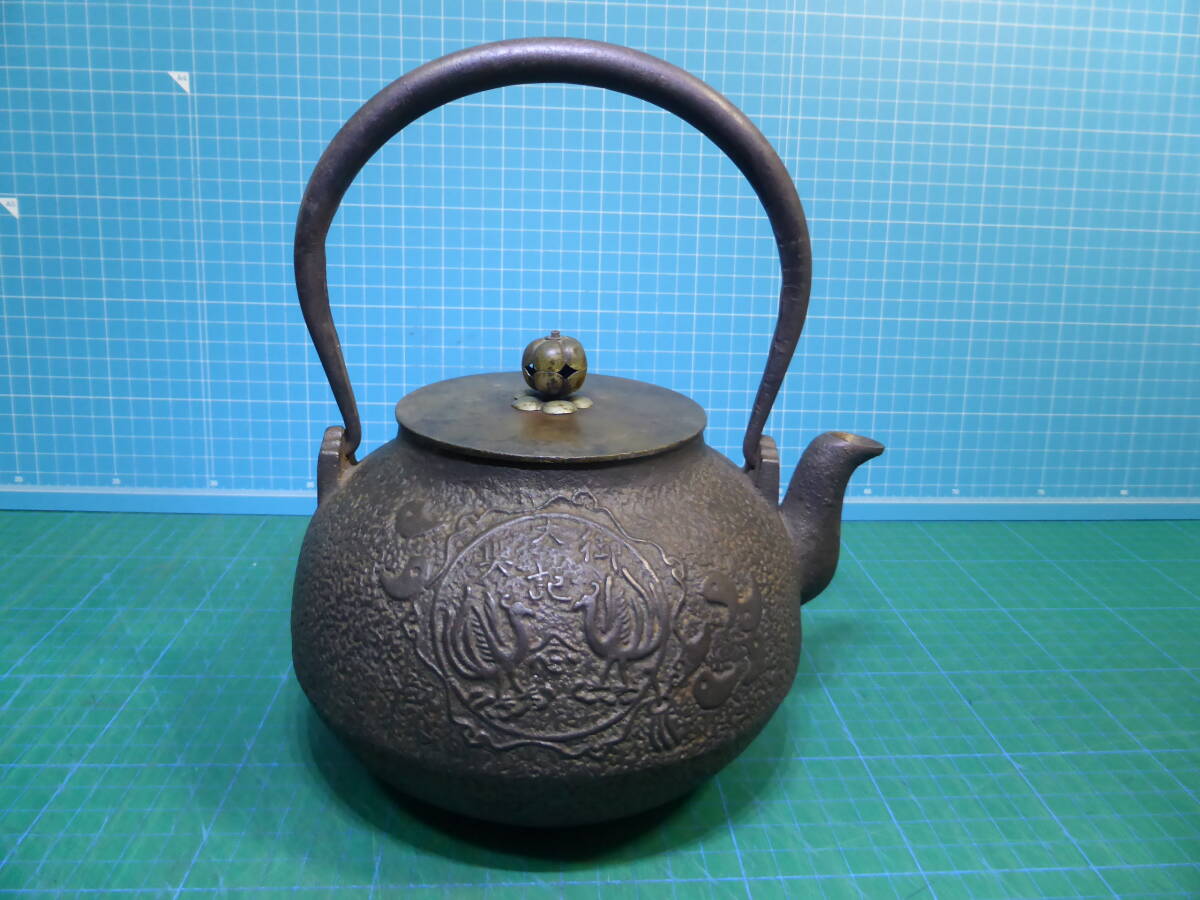 - 624「龍文堂造 大典記念 大正、昭和?三年」京鉄瓶 満水1450mL 重さ1660g 水漏れ無し