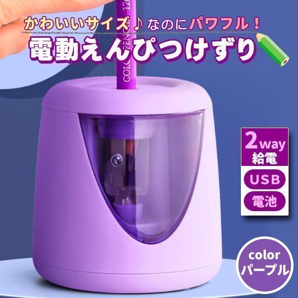 - 電動鉛筆削 おしゃれ パープル こども USB 鉛筆削り器 ミニ 小型 えんぴつけずり 男の子 女の子 電池 2way