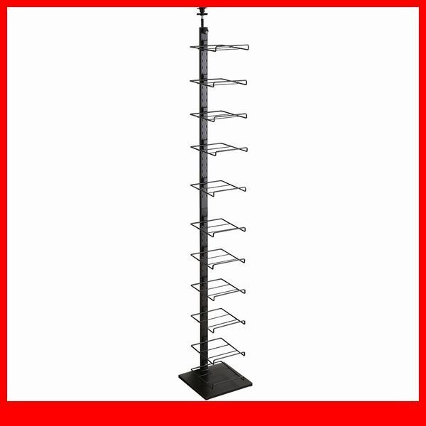 - 玄関収納★新品/ディスプレイ突っ張りシューズラック/省スペース 見せる収納 可動棚/ブラック/a1