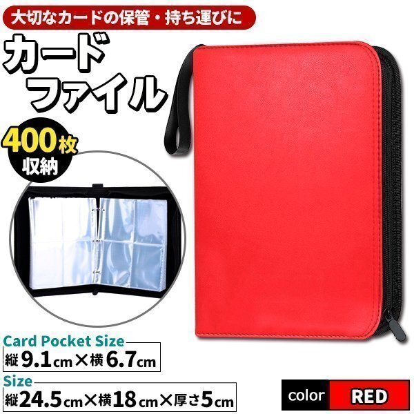 - カードファイル トレカケース トレーディングカード 4ポケット 400枚収納 レッド 赤 カードバインダー トレカ カードケース カード収納