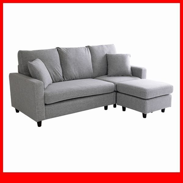 > ソファ★北欧インテリア 3人掛け コンパクトカウチソファ クッション付き/布地 ポケットコイル S字バネ 天然木脚/ライトグレー/限定 特価/a