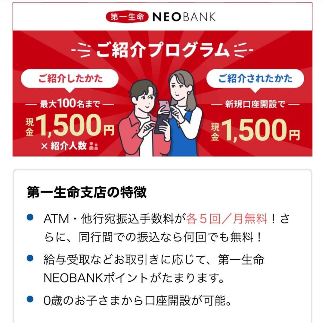 - 【最新】第一生命NEOBANK ネオバンク 紹介コード 口座開設 紹介キャンペーン 紹介コード oF3GcYE 友達紹介